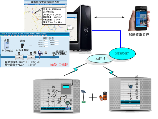 為保證供水工作的科學性,依靠現代計算機通信技術和傳感技術,實施對供水管道的無人化遠程實時監測,并且能夠自動傳輸到上面各級主管部門,監測輸水管道、城市供水管道的壓力、流量信息;及時發現管網故障,提高維護效率、降低損失,保障輸水、供水質量,達到科學預警,減少成本,提高效率的目的