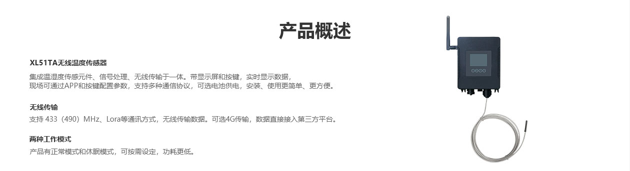 XL51TA無線溫度傳感器,集成溫度傳感元件、信號處理、無線傳輸于一體。帶顯示屏和按鍵,實時顯示數據,現場可通過APP和按鍵配置參數,支持多種通信協(xié)議,可選電池供電,安裝、使用更簡單、更方便。
