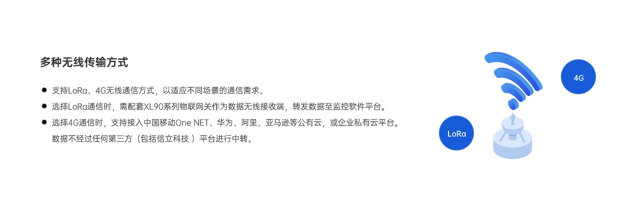 用于監(jiān)測點(diǎn)分散、數(shù)量少、供電不方便的場景。電池供電,變位、超限觸發(fā)功能,更適用于變送儀表信號(hào)、開關(guān)接點(diǎn)信號(hào)采集。