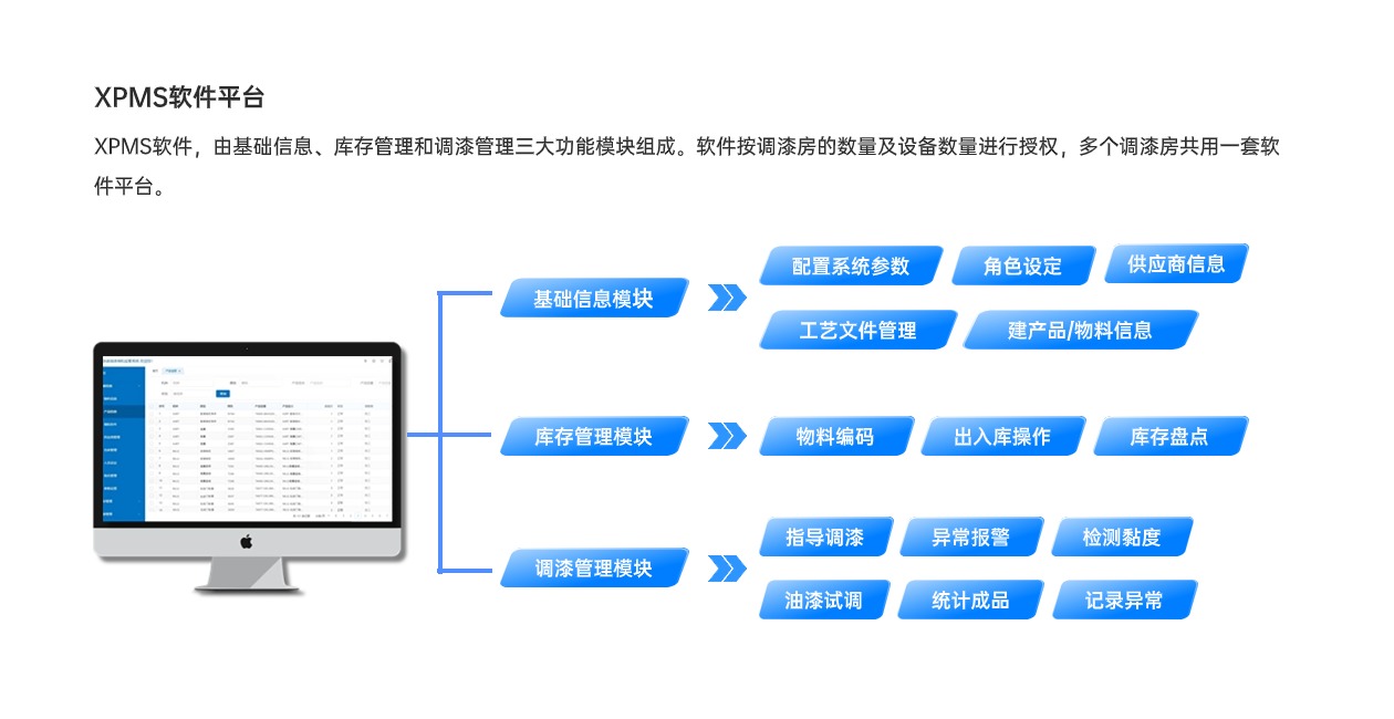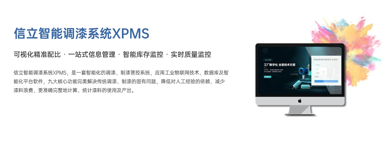 信立調漆管控系統XPMS,應用工業物聯網技術、數據庫及智能化平臺軟件,標準、規范、指導、監管調漆過程,實現調漆操作智能化、簡單化,有效提升調漆質量、減少漆料浪費,降低人為因素風險,是一套智能化的調漆、制漆管控系統。