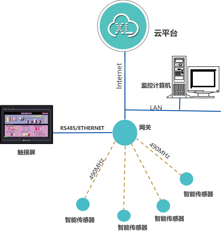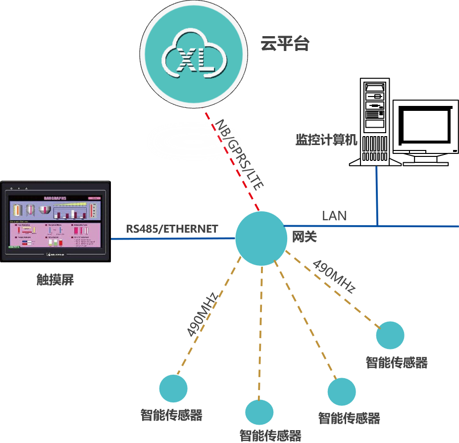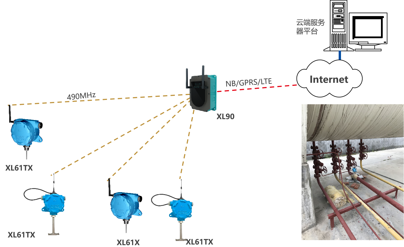 選擇XL90物聯(lián)網(wǎng)關(guān),無線讀取監(jiān)測點(diǎn)的數(shù)據(jù),進(jìn)行協(xié)議、通訊轉(zhuǎn)換后,推送至上層軟件平臺