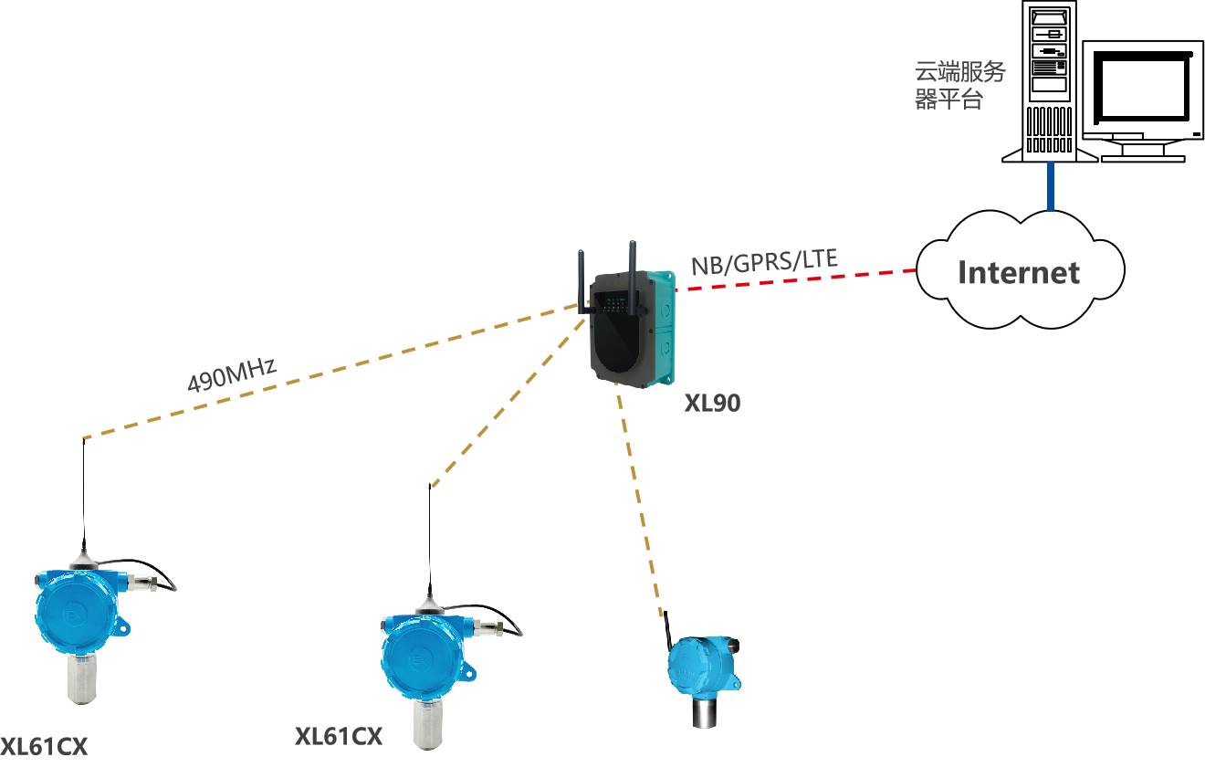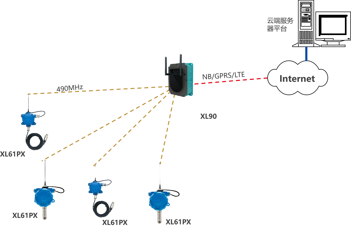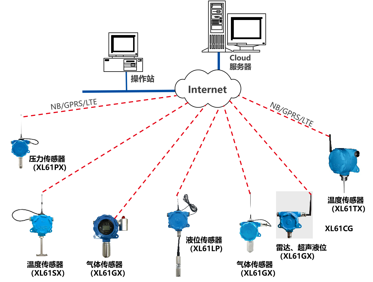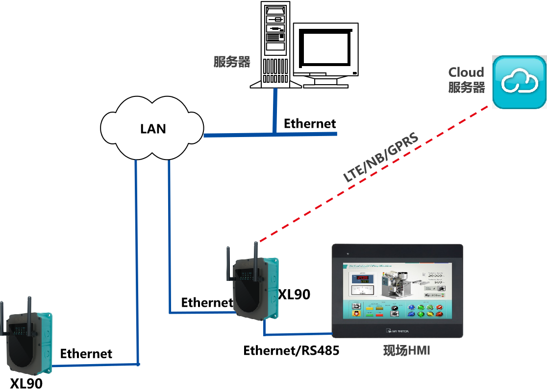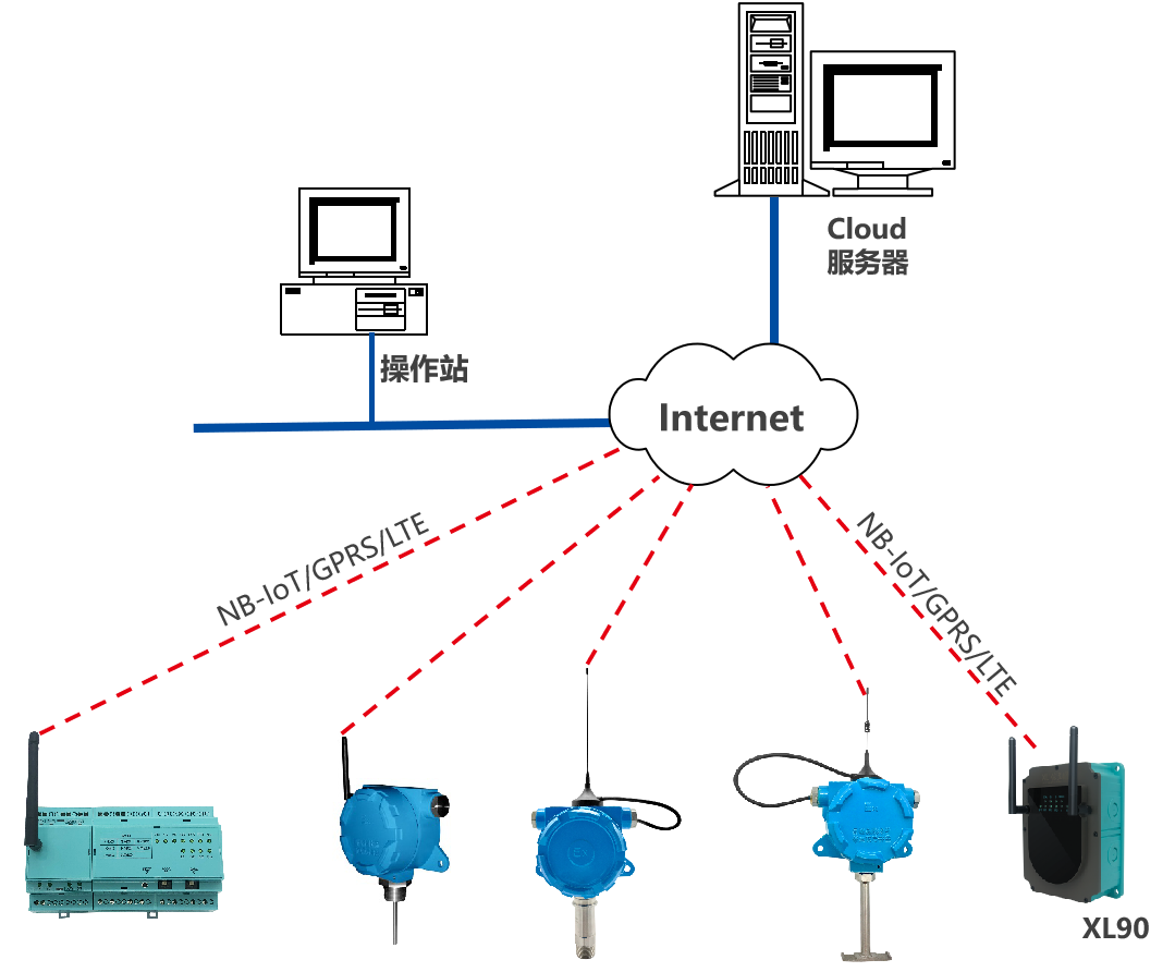 XL90,將數(shù)據(jù)上傳給企業(yè)內(nèi)部的多個(gè)系統(tǒng)軟件平臺;通過LTE(4g)/NB/GPRS將數(shù)據(jù)上傳至云服務(wù)器