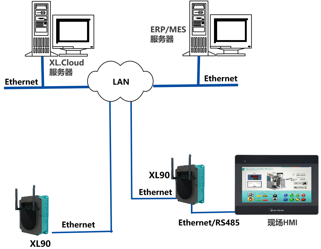 XL90物聯網關,可將數據接入私有云服務器,或公有云服務器,支持oneNET、AWS、Azure,以及及百度、阿里、騰訊,及其它公有云平臺