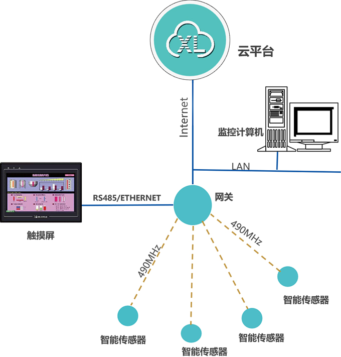 安裝現場具備有線網絡上網,物聯網關通過以太網接口,接入因特網,聯接云平臺
