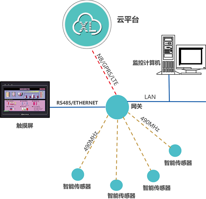 智能傳感器,通過LoRa(490MHz)上傳數據至物聯網關