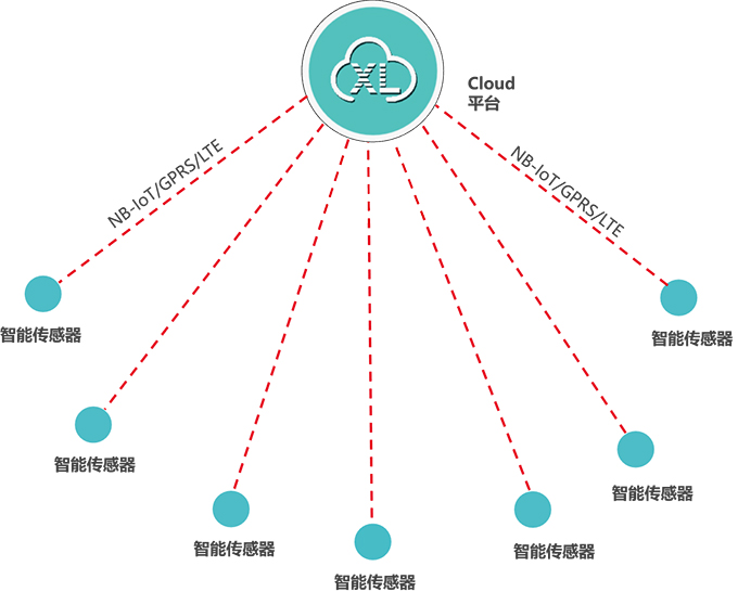 智能傳感器,通過NB/GPRS/LTE,推送數據至云端平臺