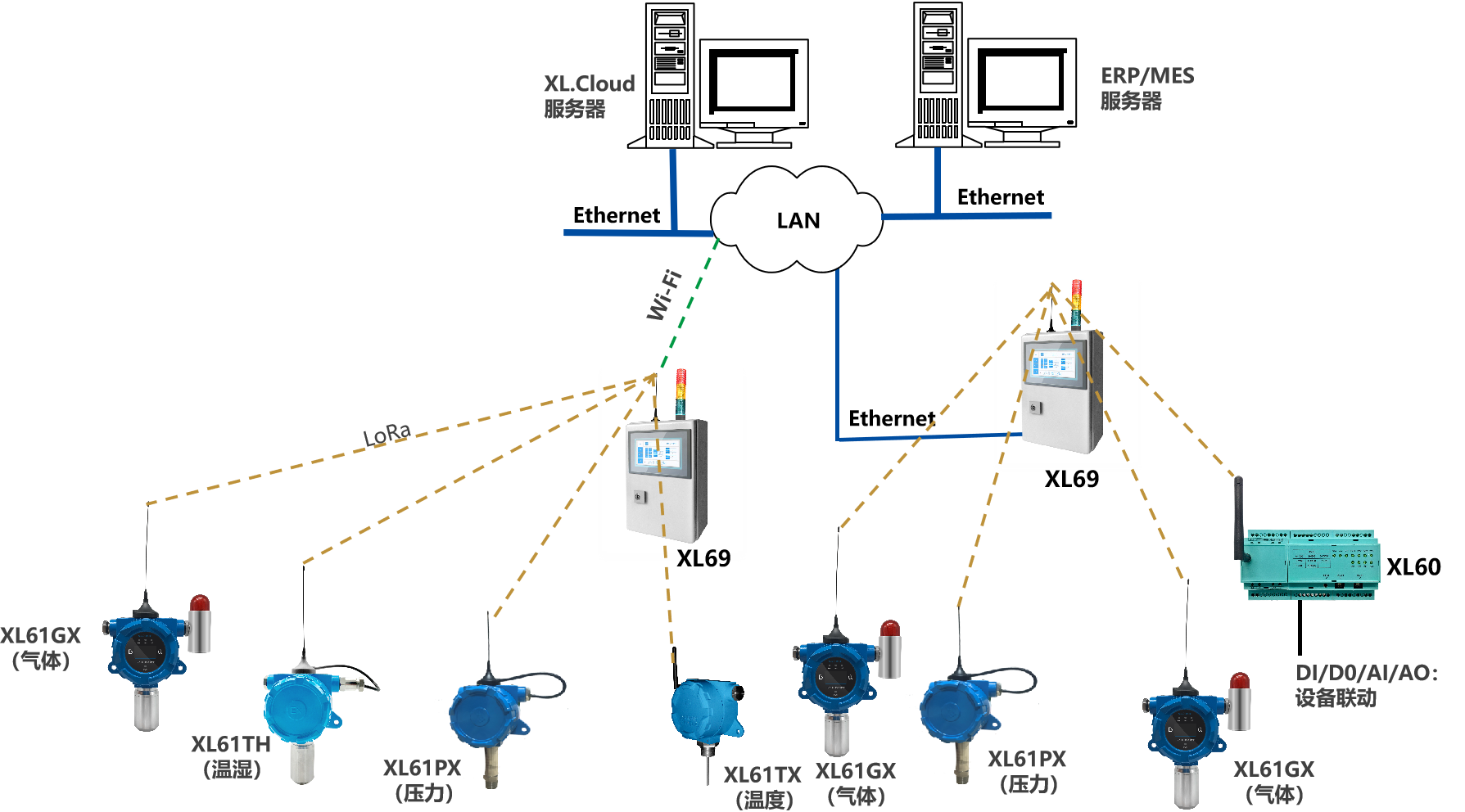 氣體傳感器:氣體監測,選擇XL61GX智能氣體傳感器,監測危險源有毒有害氣體濃度,主要功能及技術參數如下: