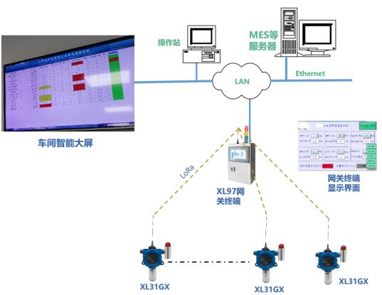 l XL31GX智能氣體檢測儀,通過LoRa接入網關終端,網關終端通過4G接入云平臺。