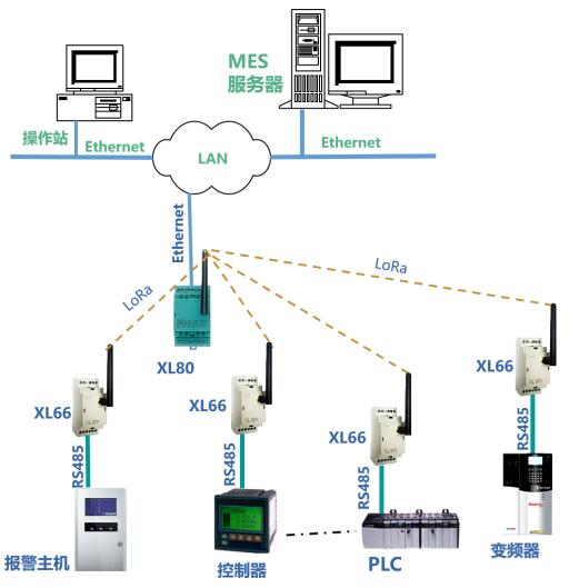 XL80主機,通過LoRa無線接口,從XL66無線讀取設備的運行數據,通信協議轉換處理后,通過Ethernet,轉發數據至MES
