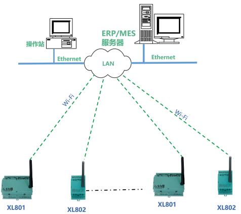 XL80X選擇Wi-Fi通信方式,適用于工廠車間內的數據采集和無線傳輸,且有局域網Wi-Fi覆蓋的區域。