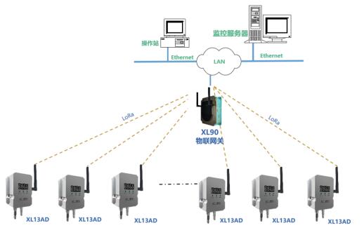 網(wǎng)絡(luò)層:XL13AD差壓傳感器通過LoRa無線傳輸數(shù)據(jù)至XL906物聯(lián)網(wǎng)關(guān)或XL97網(wǎng)關(guān)終端,網(wǎng)關(guān)可選Ethernet、Wi-Fi、4G等多種方式將差壓數(shù)據(jù)傳輸至監(jiān)控平臺。