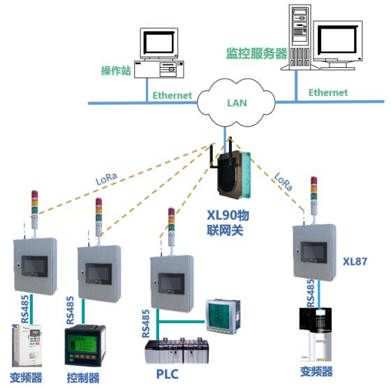 XL90物聯(lián)網(wǎng)關作為無線接收端,進行協(xié)議轉換,數(shù)據(jù)轉發(fā)。