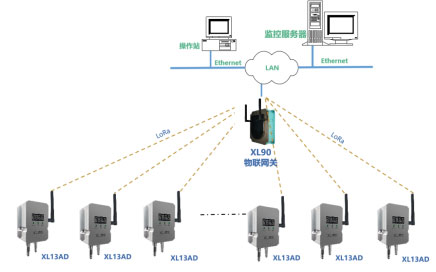 XL13AD無線壓差傳感器通過LoRa無線傳輸數據至XL906物聯網關,網關可選EthernetWi-Fi4G等多種方式將壓差數據傳輸至監控平臺。
