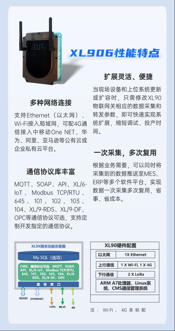 XL90物聯網關是信立工業物聯網(XloT)的核心,是節點和平臺之間的通訊樞紐和橋梁,啟動、管理通信網絡,協調節點通信,實現通信管理數據采集、協議轉換轉發等,構建更穩定、更可靠、更安全的無線通信網絡。