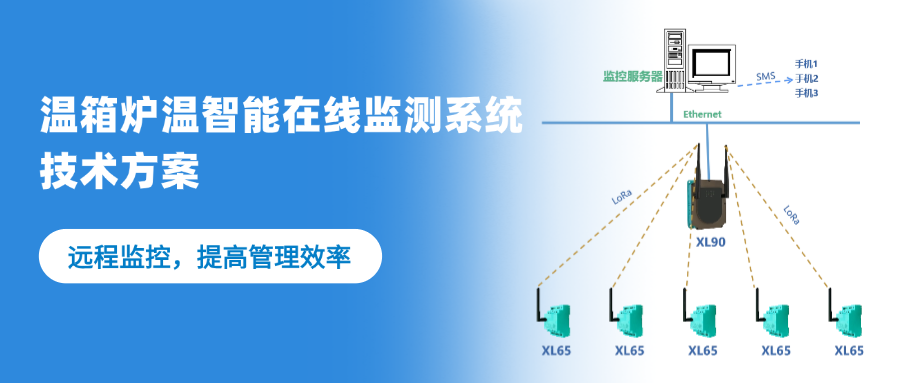 XL65通過LoRa無線上傳數據至XL90物聯網關,XL90通過Ethernet接入監控服務器或企業MES系統。